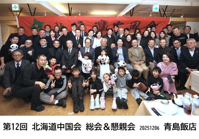 12月6日、札幌では初雪が本格的に降り始める寒い一日となりましたが、日差しにはどこか温もりが感じられました。そのような中、「第12回 北海道中国会 総会&懇親会」が市内の中華料理店「青島飯店」にて開催されました。緊張が続く日中関係とは対照的に、会場内は終始温かく、和やかな雰囲気に包まれていました。