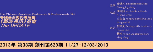 美國華裔教授專家網《即時通訊》週電2013年 第38期 創刊第629期 11/27-12/03