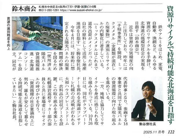 資源リサイクルで持続可能な北海道を目指す「鈴木商会」を紹介しました。(P122)