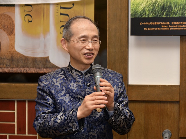 来賓として、王根華総領事、そして札幌市副市長の加藤修氏から挨拶がありました。乾杯は、北海道日中友好協会会長の城木信隆氏の音頭で始まり、会場は和やかな歓談の時間へと移りました。